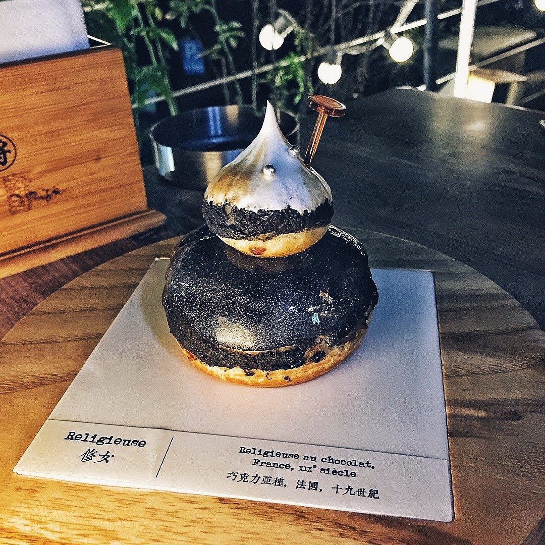在消灭了舞蹈家小节后,我又点了一份巧克力修女。巧克力修女其实是大小泡芙的组合,外面特别梦幻,裹了一层闪亮的巧克力外衣。两个泡芙都填充了满满的巧克力内陷,所以味道非常浓郁。我,这个巧克力爱好者,结果是吃得停不下来。