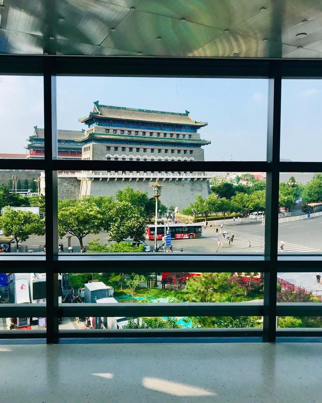 第二层主要售卖的是儿童书籍,所以画风就不那么现代高冷。实木地板和书架,橘黄色灯光,整个画面暖融融的,钟情日系风格的仙女可以到此一游。这一层有一个花艺区,里面有很多书本与花卉融合的摆设,文艺又精致,totally就是爱丽丝梦游仙境的片场。来到第二层,大家一定要记得走到落地窗前。在这里你能观赏到北京的中轴线,也能看到历史悠久的正阳门。建议大家挑日落时分来,这样可以看到别有韵味的老墙、老洋房染上一层暖暖的金黄色。到底有多美呢?请憋问我,反正我没赶上嘻嘻。