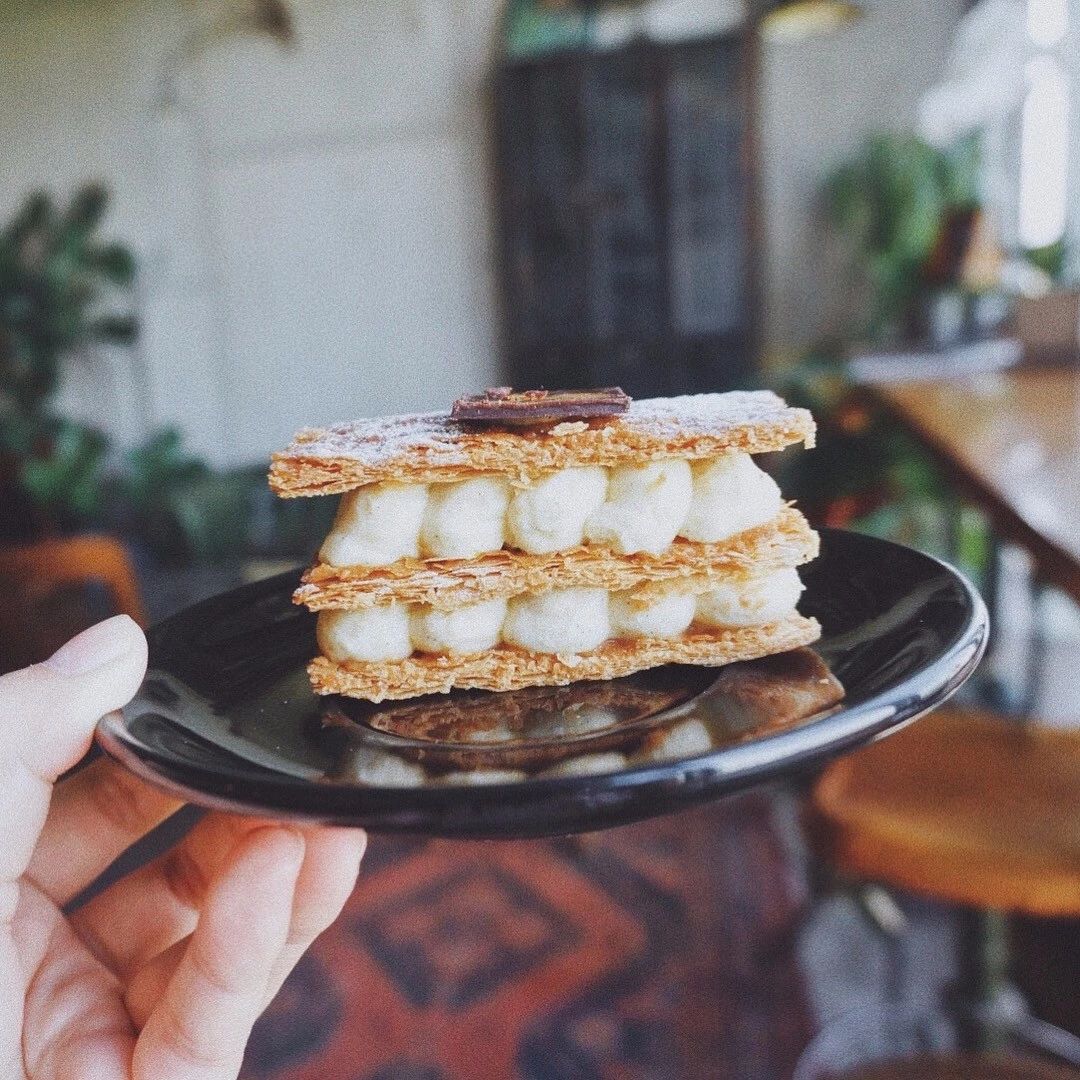 Berry Beans店内最经典的甜点有两款,一款是香草拿破仑。精选马达加斯加香草籽制成卡斯达酱,将拿破仑层层填满。酥皮轻薄酥脆,一刀切下去便能看到漂亮的分层。吃起来味道更是棒呆,满满都是浓郁芬芳的香草味。