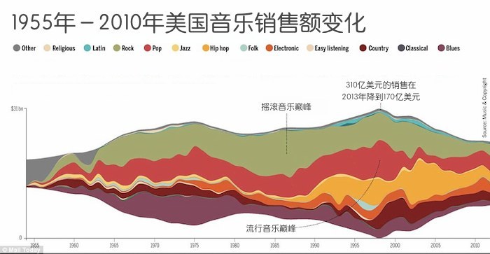 在《疯狂的唱片业》中有一组关于传统唱片连锁行业的数据很有意思。卡维尔发现CD确实点燃了音乐行业新一轮的爆发,音乐零售门店的数量从1987年的5503家暴增到1992年的7014家。但随着竞争加剧,短短五年后就有7家大型连锁店相继破产。