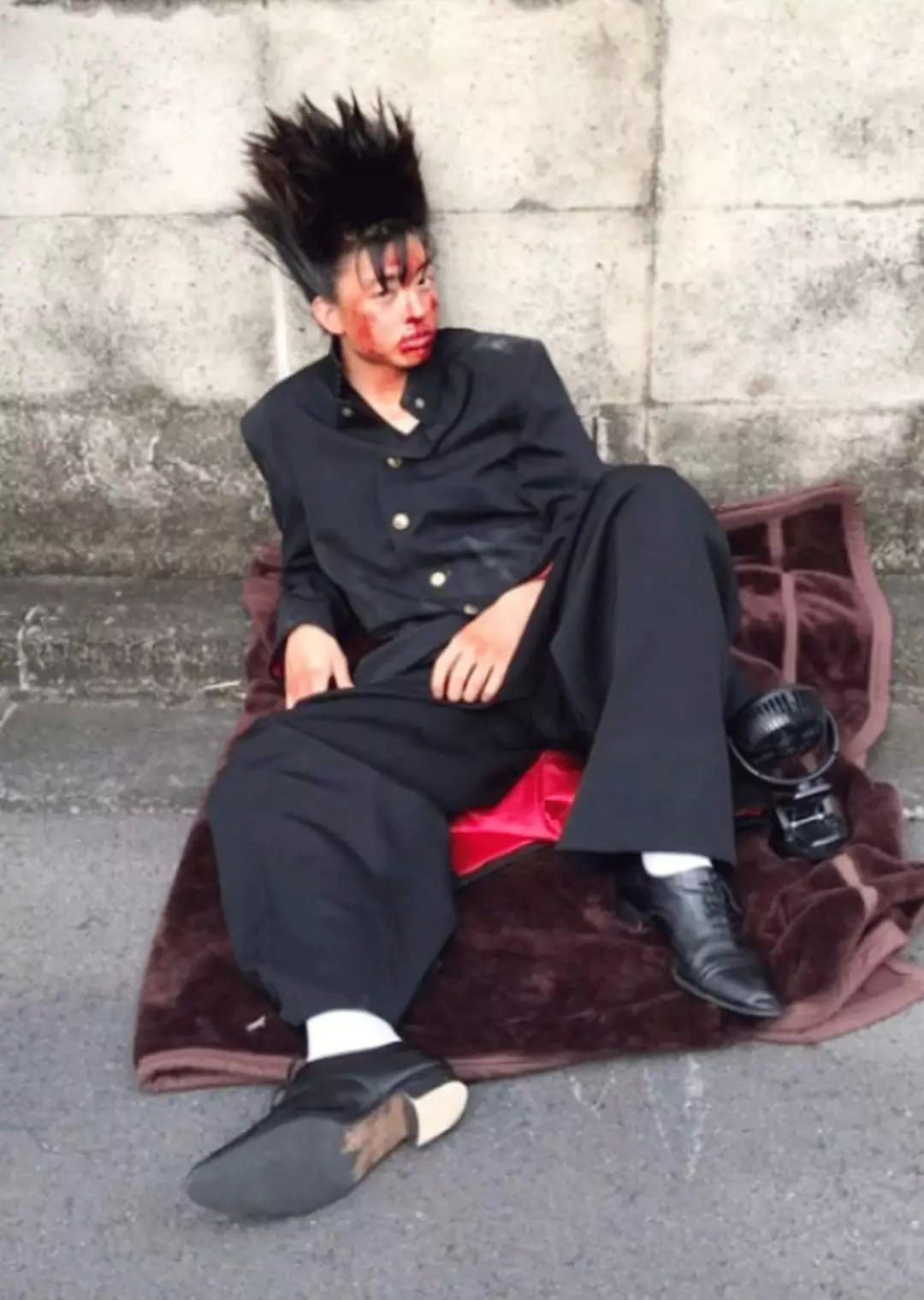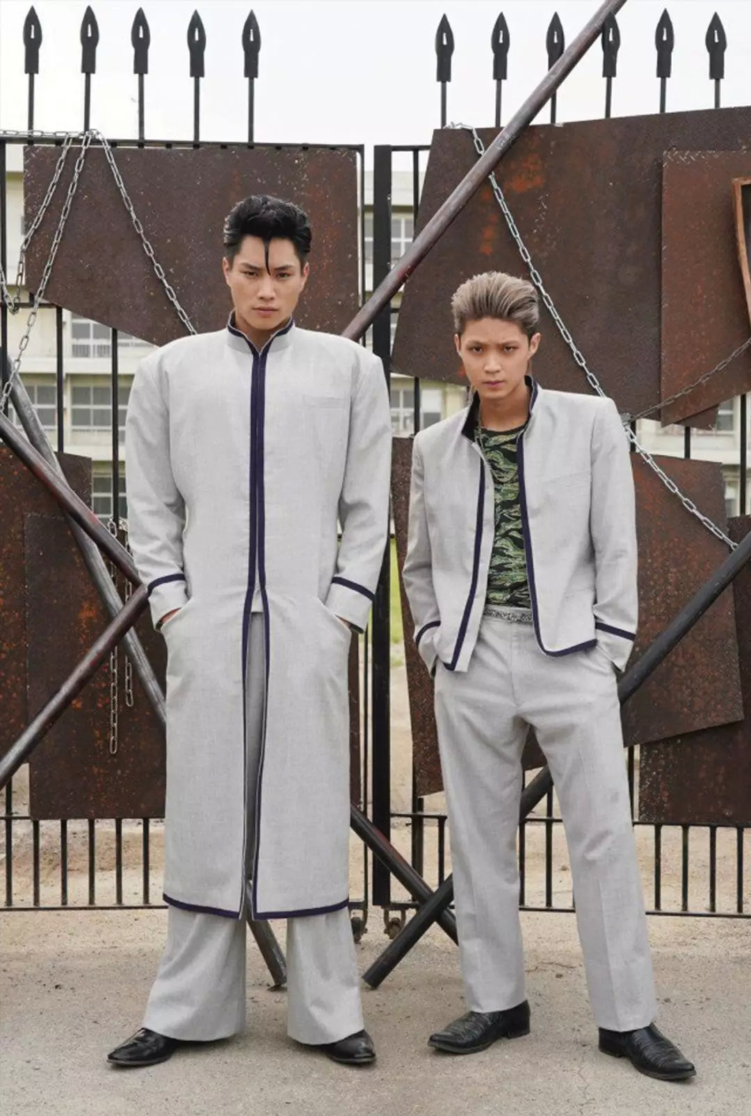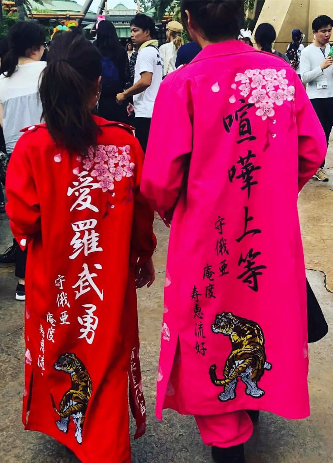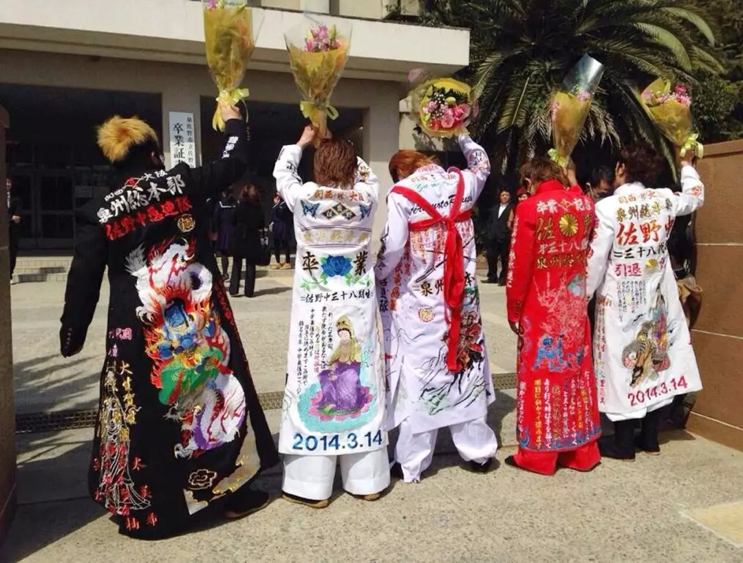 男二穿的是加长款,又叫应援服,之前是啦啦队用的,后来不良少年们拿来穿了。这些都是暴走族衣服的基本款,叫诘襟。