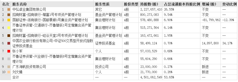 从中弘股份三季报数据来看,其前十大股东中也有不少机构投资者的身影。除了控股股东中弘卓业集团、1家投资公司、两名自然人外,其他6家全部为公募基金、券商资管计划,合计持股比例高达25.88%。