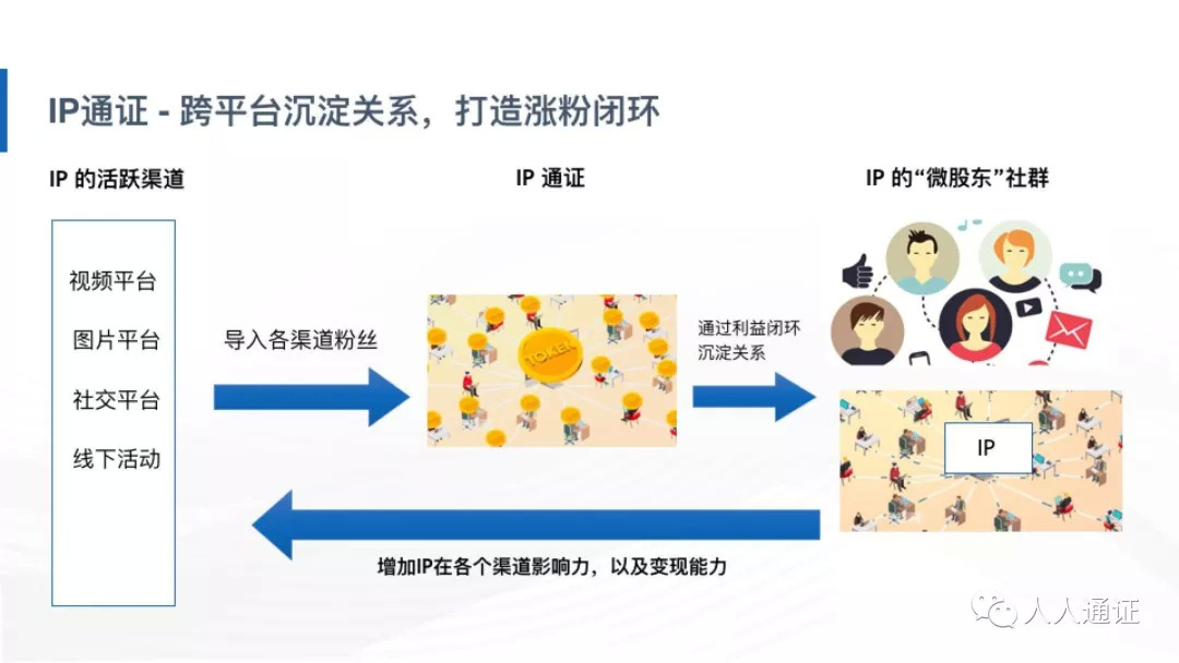 人人通证是我所看到的最棒的发展平台,能够提供一个非常棒的产品,帮助迫切需要涨粉的KOL,利用通证的优势,打造绝对的涨粉闭环,如下图:IP通证的优势在哪里?
