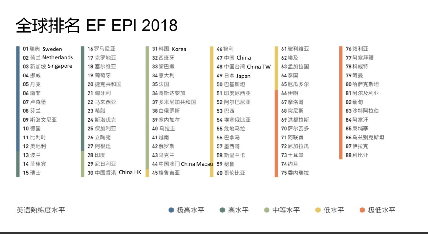 日前,全球教育培训公司英孚教育连续第八年发布《英语熟练度指标报告》, 这次他们给全球88个国家的130万非英语母语的人进行了英语熟练度测试。