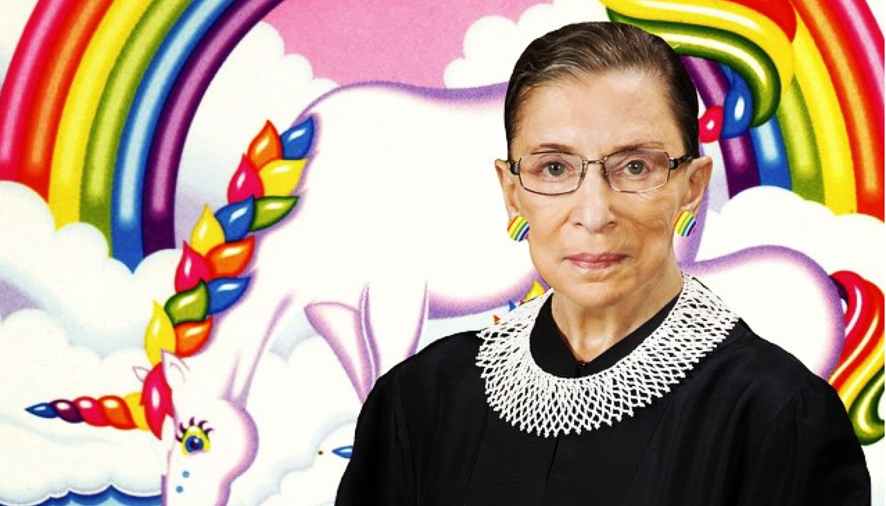 以上对金斯伯格的致敬和赞许不过是“金斯伯格风潮”的开始。曾经,金斯伯格被轻蔑地描述为严肃古板的学者,不够激进的另类女权主义者,以及无聊落伍的作家。但现在她成了推特上流行的话题标签,她说的每句话都在网上疯传。甚至,新闻媒体在描述她说的话时,已不满足于“金斯伯格说”这种平淡的说法,而是在头版标题中表示金斯伯格“犀利地直指事物本质”。人们开始以“声名狼藉的金斯伯格”命名鸡尾酒——至少在两个城市中你可以喝到两种不同的“声名狼藉的金斯伯格”鸡尾酒。卡通频道中出现了名叫“拉思·霍弗·金斯波特”的卡通人物(“以收拾别人为人生使命”)。金斯伯格的肖像被制作成拼贴画,绘成了美甲图案,至少被三个人文在了自己的手臂上,还被加上幽默的双关语印制在各种情人节礼物和节日贺卡上。