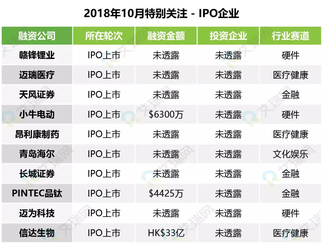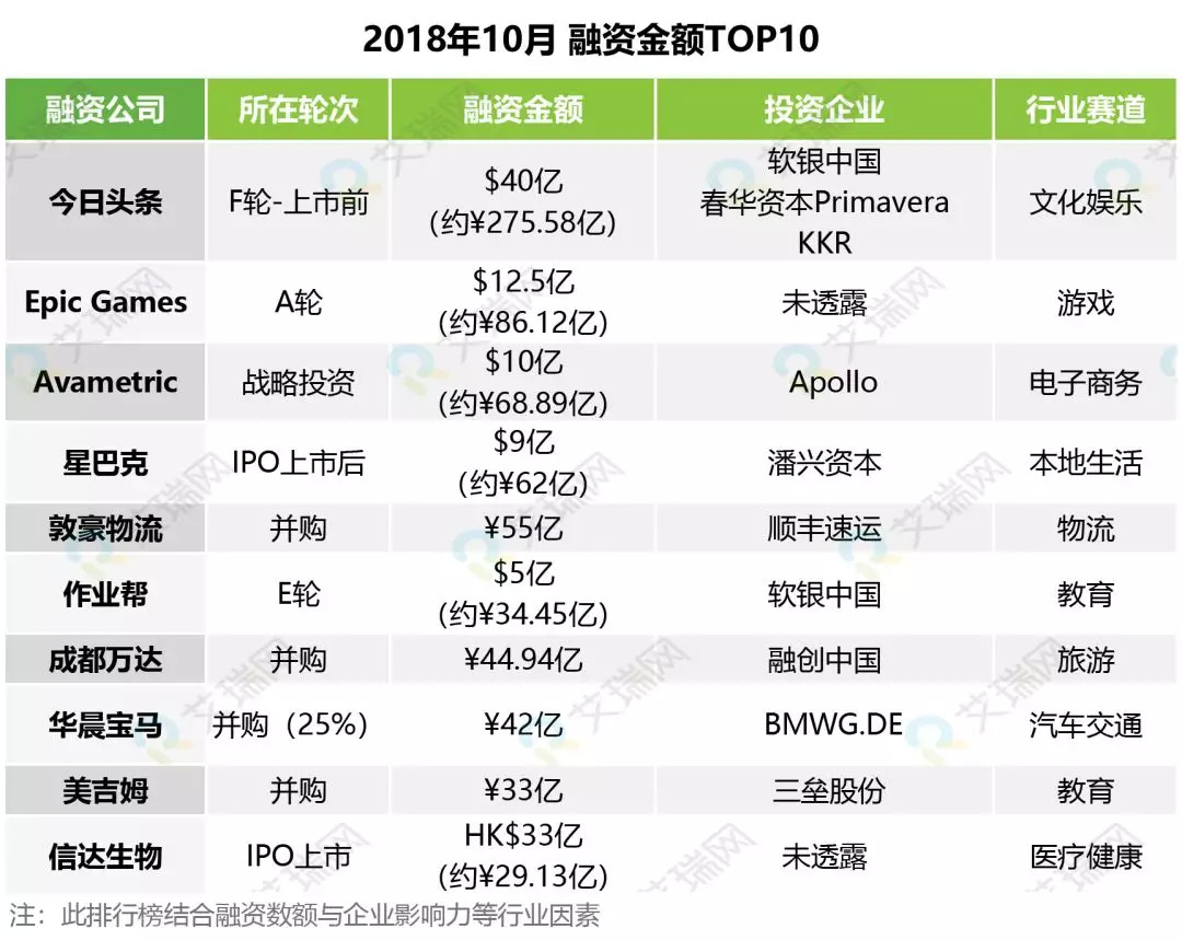 10月其他投资TOP 10企业为作业帮、成都万达、华晨宝马、美吉姆和信达生物。