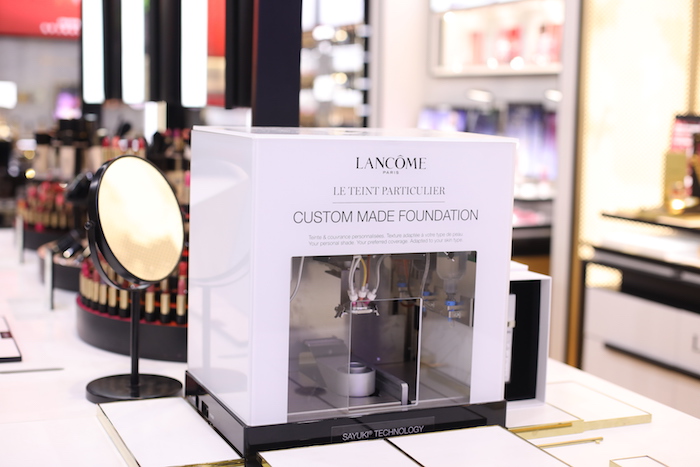 欧莱雅集团旗下科技孵化器今年公布了多款定制美妆产品和数字化工具成果,此次进博会上主要展示了兰蔻定制粉底系统Le Teint Particulier。该产品通过肤色测评仪为用户测评肤色、选择定制色号,然后根据客户的需求设计粉底的自然度和遮瑕力,最后混合配方制作完成定制粉底。据了解,该定制系统有8000种色号及7.2万种定制选项供选择,目前已在美国一小部门兰蔻专柜发售,公司也在考虑未来将其引入中国。