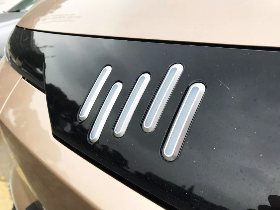 另外说说这个“五条”的LOGO。我三岁的儿子说这个“像小兔子一样蹦蹦跳跳”,至少说明它让人有想象空间。我觉得这是比较贴近互联网品牌的一个简约设计。另外这个LOGO也是市场上唯一一枚以LED灯为材质的LOGO(金属的边框,中间部分是灯,乍一看像是全部都是金属的),因此你可以选择让车标亮起来。亮起来其实也不突兀,是个比较小的细节。还挺酷的。