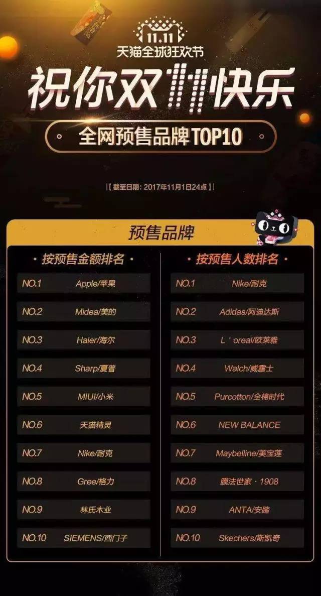 2014年11月11日,阿里巴巴双十一全天交易额571亿元。2015年11月11日,天猫双十一全天交易额912.17亿元。 2016年11月11日,天猫双十一全天交易额超1207亿 。2017年,双十一天猫、淘宝总成交额1682亿元,刷新纪录。