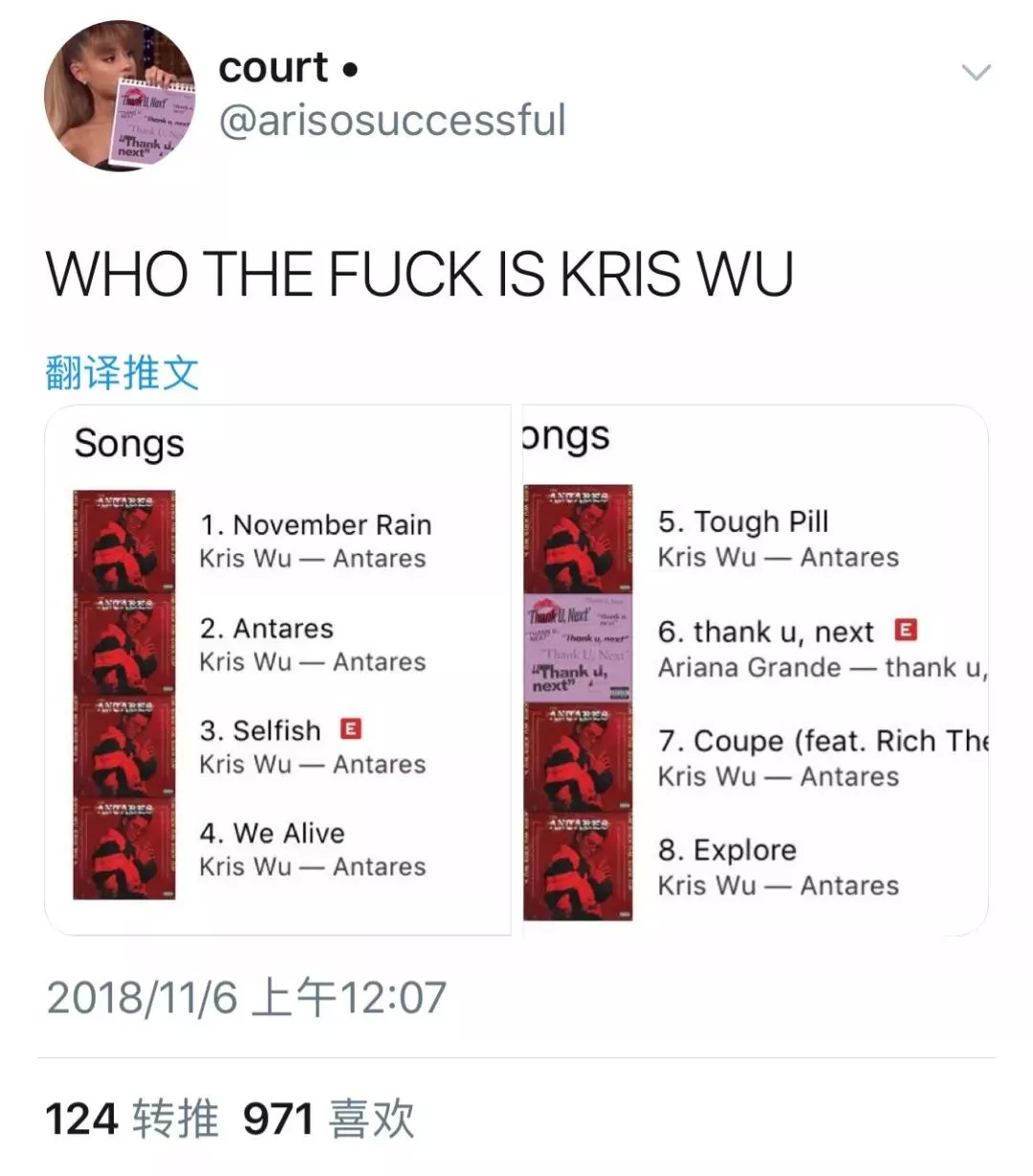 在说这个问题前,首先需要理清楚国内外媒体针对此事的报道逻辑。最早是因为《Antares》在iTunes登榜,挤下了美国人民的心尖尖A妹,因此引发西方网民和媒体的好奇,Kris Wu成了外网搜索热门;而当这件事情被传播到国内时,深知(甚至诟病)东亚饭圈文化的国内媒体就已经准备好开始全面口嗨的狂欢。