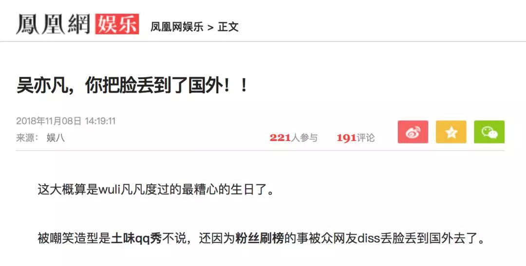 反观国内,事发几日依然热度不减,可挂在首页的、转在朋友圈的全是一边倒的负面表达,在其中起到主导的便是音乐圈和媒体圈的极端反映。华尔街新闻说这是《吴亦凡的面子》,网易新闻说《吴亦凡让世界人民了解“中国水军”的力量》,凤凰娱乐索性直接开喷《吴亦凡,你把脸丢到了国外!》……