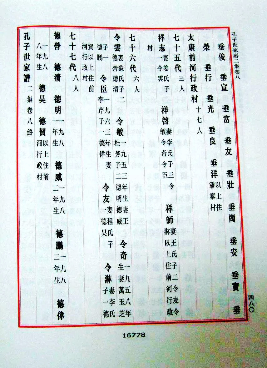 目前孔孟二姓,依然遵照此执行,就是我们所熟知的庆、宪、凡、祥、令。每个子孙的名字中间按辈份,都会有一字。