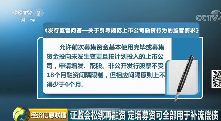 万亿级再融资市场迎来政策大红包,证监会修订两项关键规则:放开资金用途限制,并对再融资时间间隔的限制做出调整。