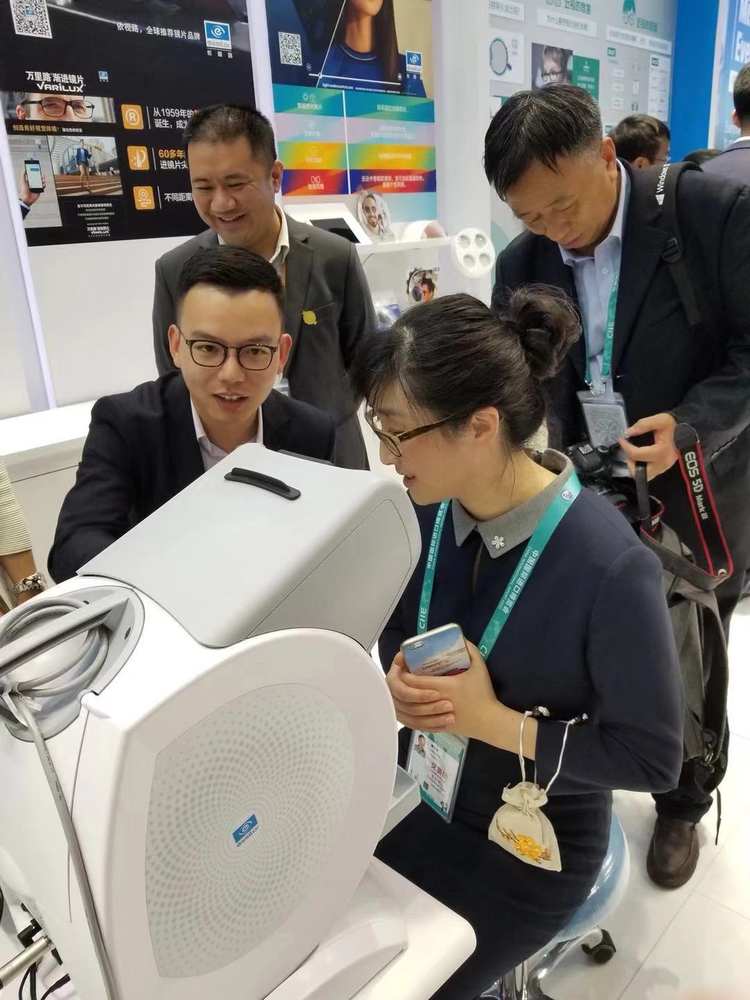 一番体验下来,她有些心动。比如,展示的WAM700七合一眼健康筛查仪可以在2分钟之内,完成对体验者白内障、青光眼、圆锥角膜3种眼健康筛查和7项全方位的眼健康评估。她也体验到了进口博览会上“亚洲首展”的VISION-RTM 800综合验光仪,它的验光精准度可以控制到0.01D,并且令球镜,散光和轴位的变化同时且连续进行。