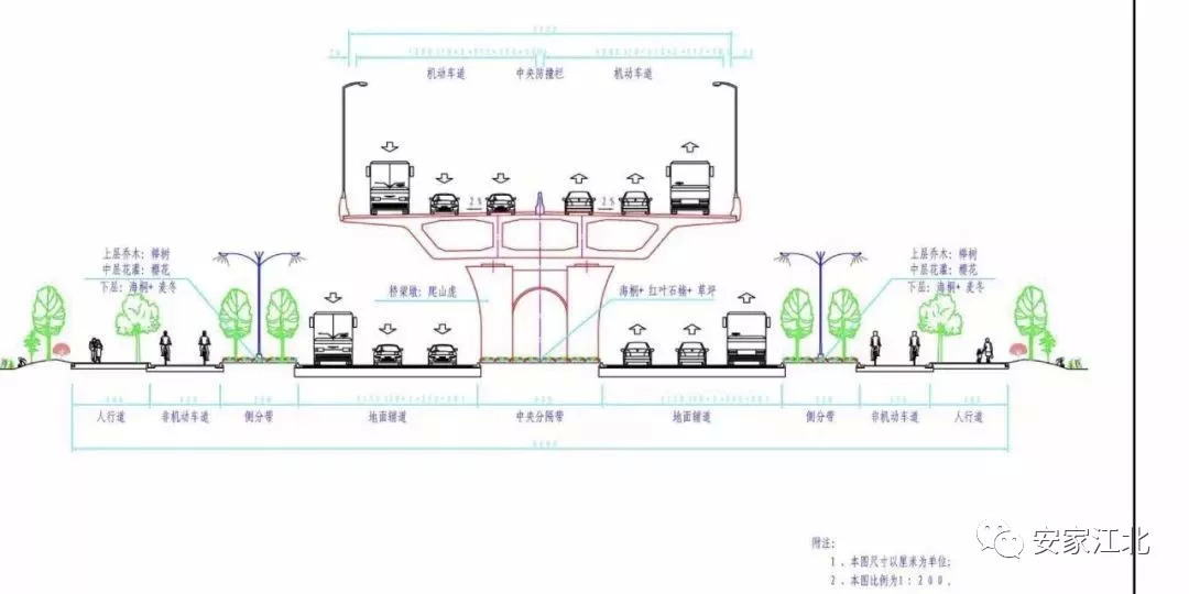 江北段按城市快速路标准建设,设计速度80公里/小时,江中及江南段按城市主干道标准建设,设计速度60公里/小时。 计划建设工期约5年。