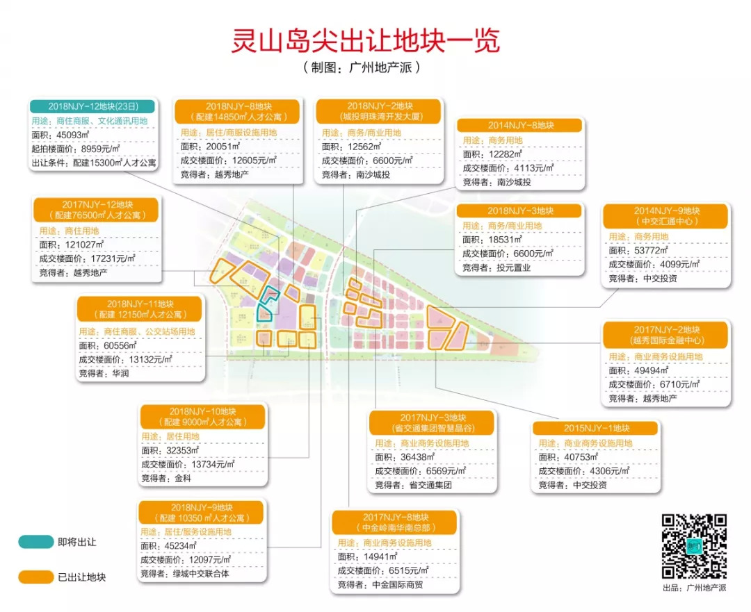 11月土拍头炮,南沙灵山岛尖三地块以最高楼面地价13734元/㎡出让。分别被绿城中交联合体、金科、华润夺得。其中,金科是继今年6月份取得黄阁地块之后,再次在南沙拿地。看来该发展商十分看好南沙的楼市。而绿城也是继广钢新城之后,再次出手拿地。华润则是今年第三次拿地。