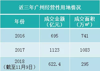 截至11月9日,广州共出让经营性用地622.4亿元,面积295万㎡。