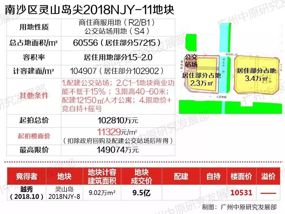 值得一提的是,西北、东北侧均为越秀竞得的地块,其中西北侧为今年年初以17231元/㎡的楼面价拿下的2017NJY-12“标杆”商住用地,东北侧为今年10月以12605元/㎡的楼面价拿下的2018NJY-8居住/商服设施用地。