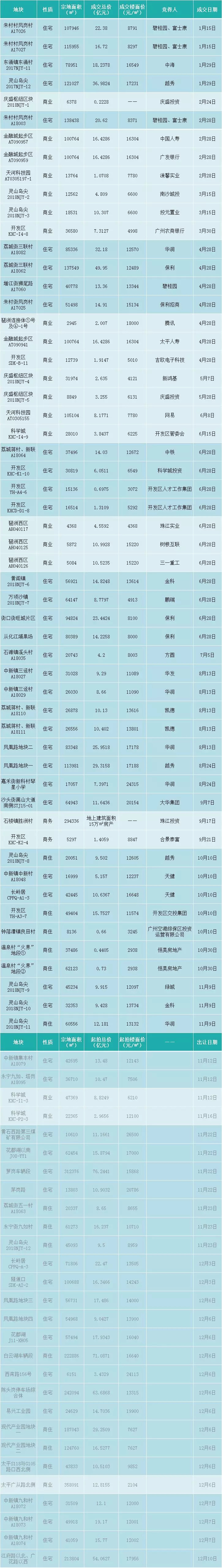 2018年广州经营性土地出让一览