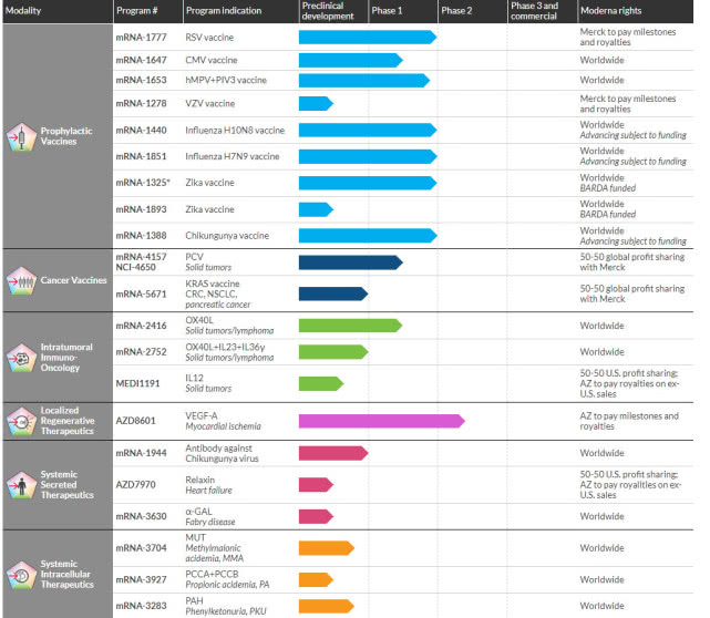 这家成立于2010年的生物科技企业致力于研发传染病、癌症免疫和罕见病相关疗法。简单来说,Moderna计划制造合成mRNA,之后注射入患者体内,使其体内细胞自行产生药物疗法。