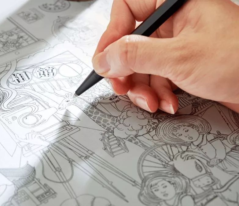 设计师渡边用圆珠笔勾勒出来了一幅幅充满了五颜六色植物的画面。