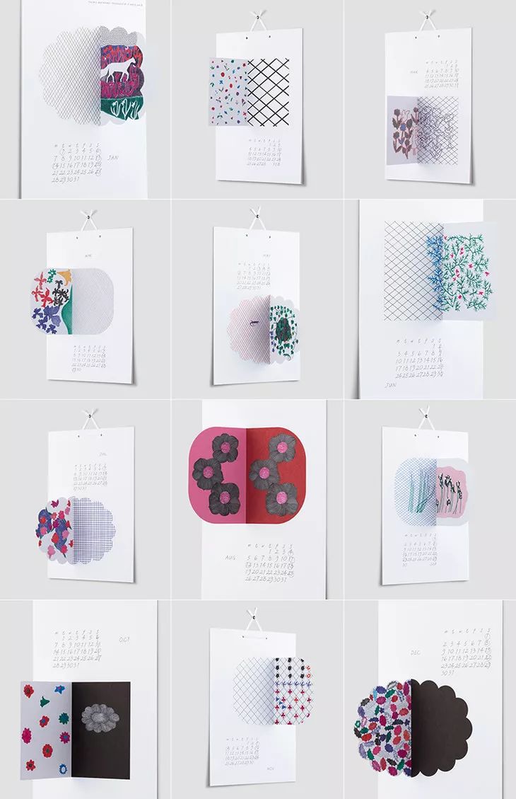 比如把明明是平面的作品设计的很有动态感。就连日历也是如此。