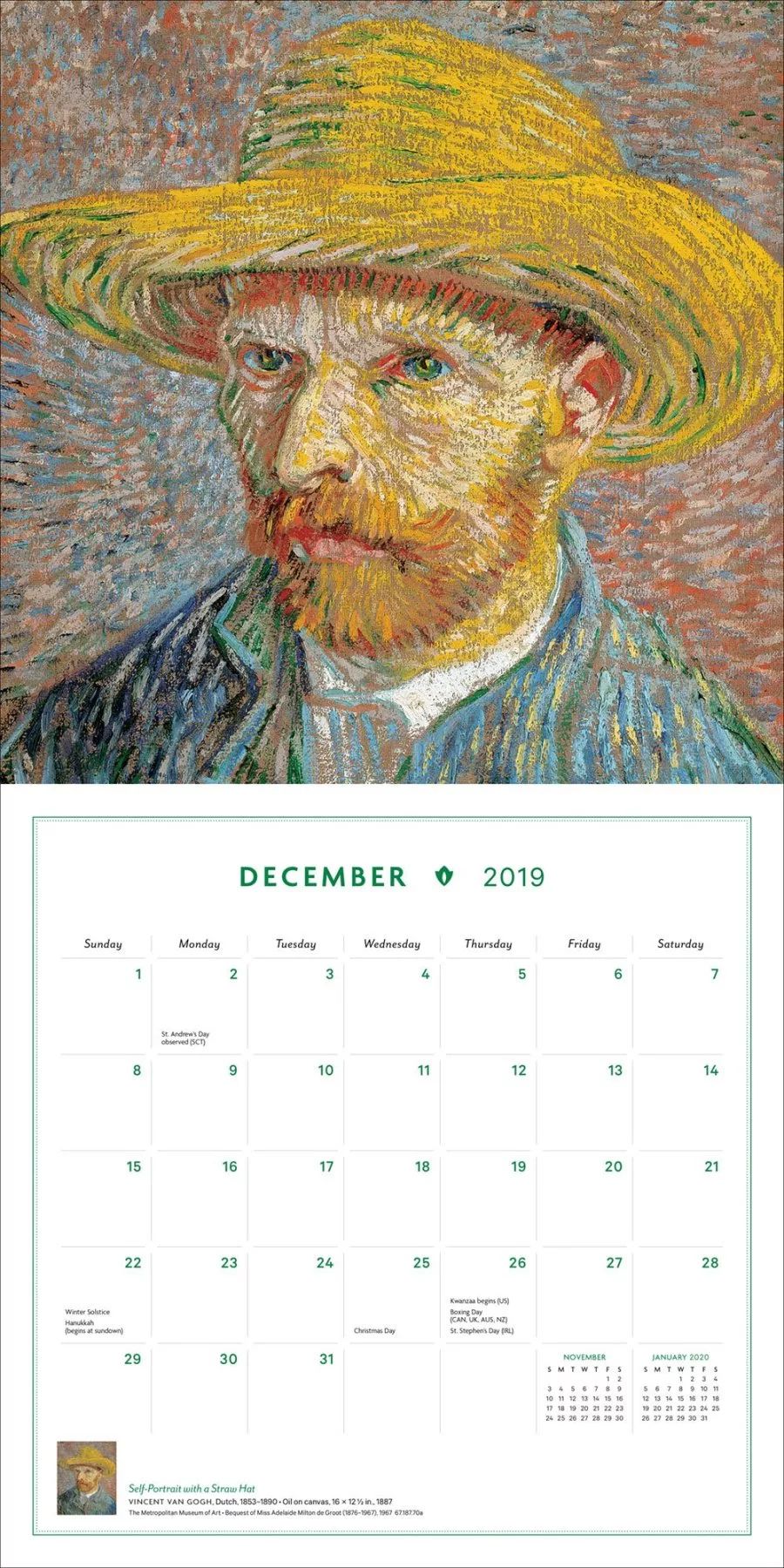 日历的内容主要是馆内的藏品,里面包括了从早期绘画大师肖象,后印象派画家作品和古文明文物等作品,一共有365件。