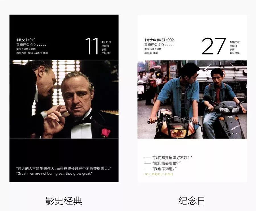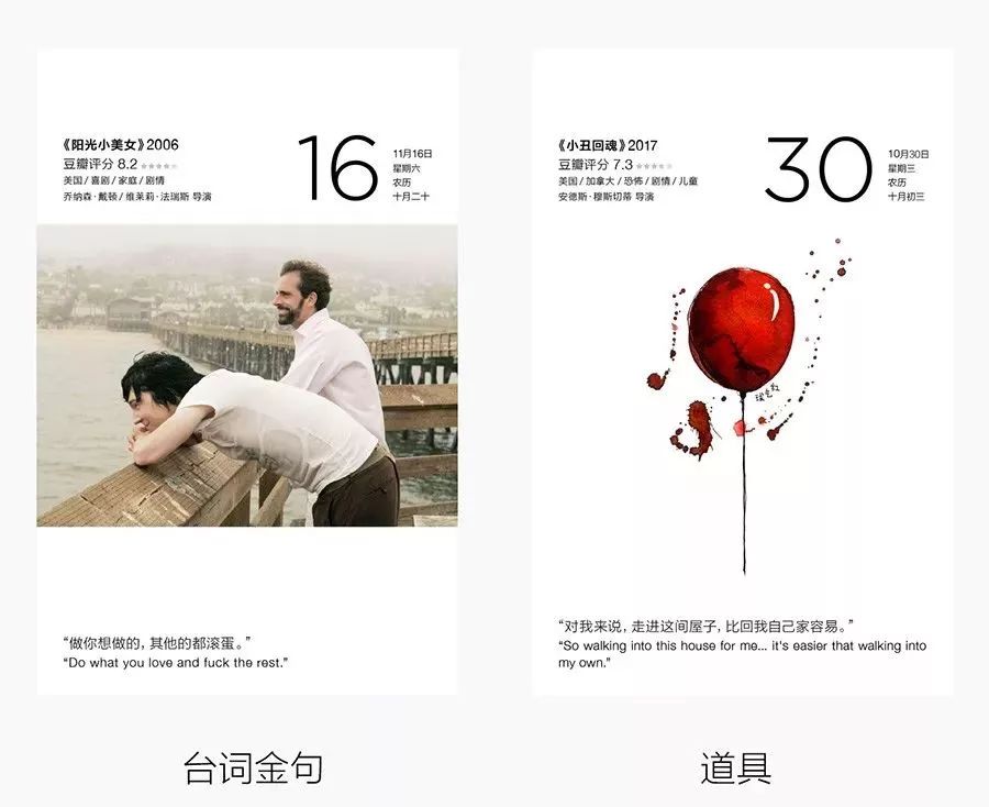 如今,豆瓣把一整年精选的7.5分以上的优质影片都整理起来并制成了一本日历。