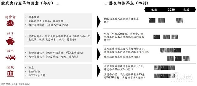 除了消费者、经济和技术的驱动,法律框架、税收政策、交通管制等因素也将对出行变革产生巨大影响。
