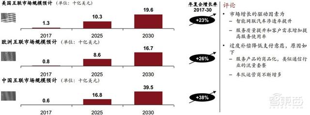 2030年,美国、欧洲和中国的互联服务市场规模将达760亿美元,从2017年到2030年的年增长率为28%。