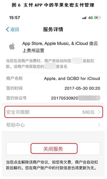 (2)签订免密支付协议时,细读文本条款,确认支付发生的条件以及额度限制,或者是否带有自动按期续费(代扣)等附属项;同时检查支付APP(或银行APP)当中的免密支付设置,及时关闭不必要的协议,或者将支付额度降到合理的范围。如下图6所示:
