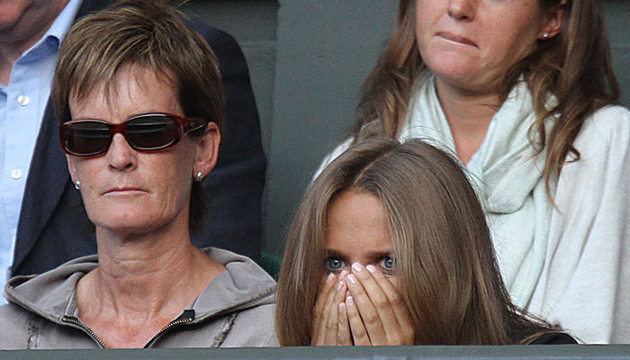 2011年温布尔登网球公开赛,看台上的西尔斯紧张地观看安迪·穆雷的比赛。