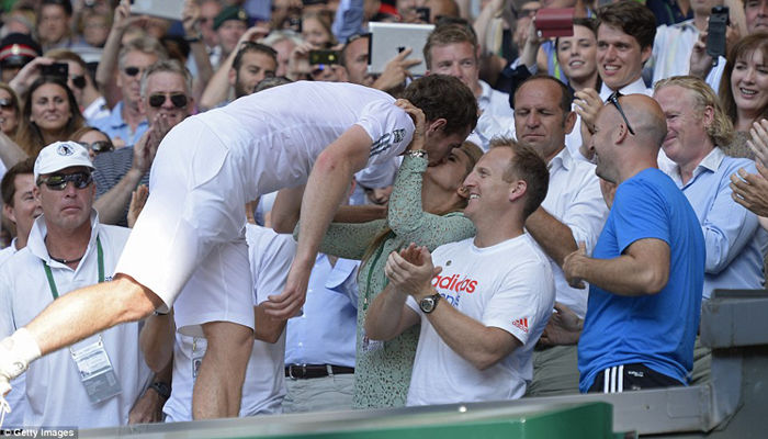 2013年7月,安迪·穆雷在温布尔登网球公开赛男单决赛中3:0横扫德约科维奇,为英国时隔77年再次拿到温网男单冠军。胜利后的他第一时间冲到场边将吻献给女朋友西尔斯。