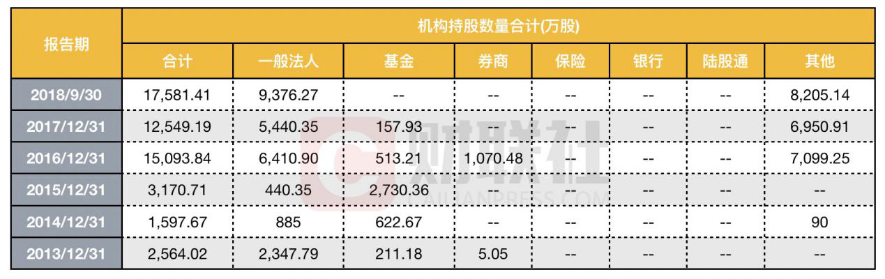 值得注意的是,公司股价在近一年来已经下跌34.17%,截至2018年11月9日收盘,乾照光电股价报收5.87元/股,相较公司在2010年上市之初股价最高点18.05元/股(前复权),股价已经跌去67.48%。此外,公司在2015年获得基金公司持股达2730万股,2016年获券商持股1070万股,而截至2018年9月末,乾照光电所有的机构投资者已全部清仓离场。