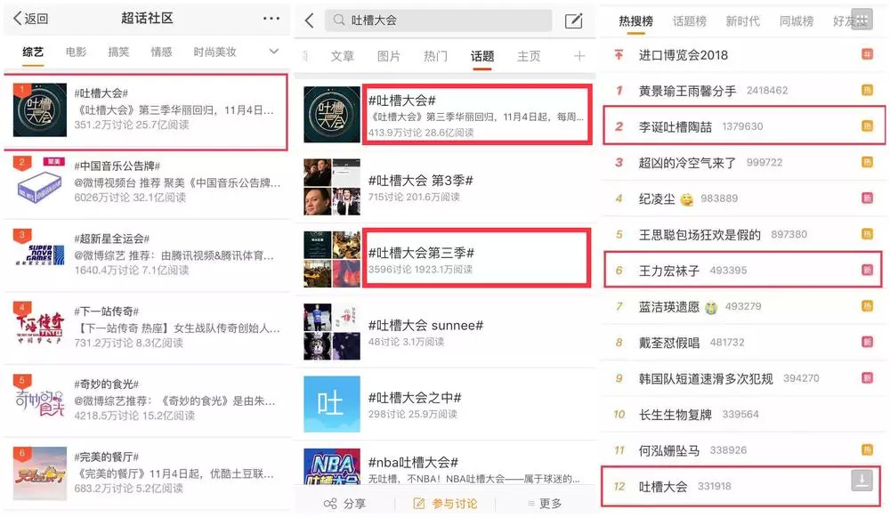 《吐槽大会3》相关数据成绩。