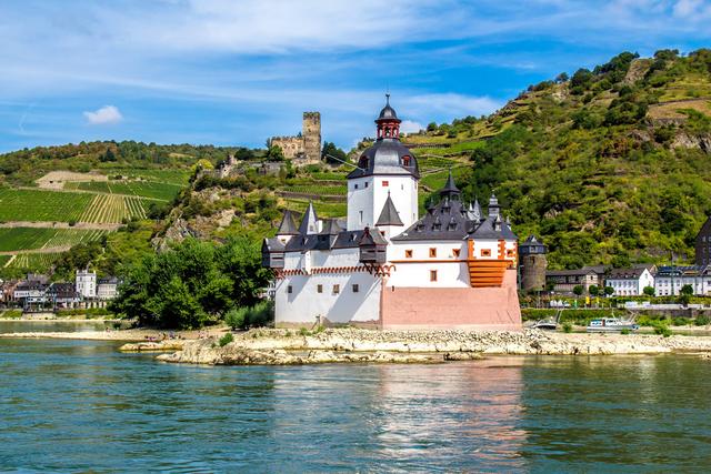 莱茵河是西欧第一大河,发源于瑞士境内的阿尔卑斯山北麓,西北流经列支敦士登、奥地利、法国、德国和荷兰,最后在鹿特丹附近注入北海。在德国法兰克福段,莱茵河两岸遍布田园诗般的小城镇,一望无际的葡萄园,以及森林田野深处的农舍和古堡,有许多品酒游、古堡住宿体验和垂钓游,沿河两岸风光无限。