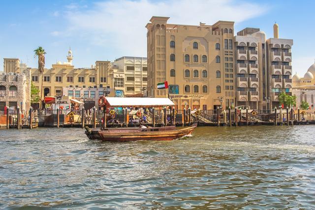 迪拜以其奢华和魅力而闻名,但是要想体验迪拜生活的另一面,你必须去迪拜湾。在香料市场和黄金市场,以及在水边,你可以看到许多的淘金者。“水上的士”往来两岸,便宜又有趣,只要1迪拉姆,油烟味有点大,但是非常有特色,很值得体验,河的两边都有卖各种纪念品的、仿大巴扎但很精致的集市。