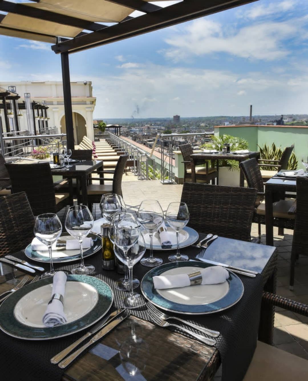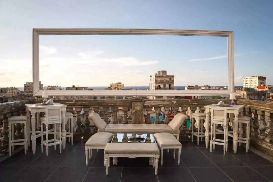 哈瓦那旧城没有高楼大厦,所以仅仅8层楼高的露台,即可看到哈瓦那所有景观,包括哈瓦那旧城,分割新城与旧城的海湾,以及蔚蓝的加勒比海。