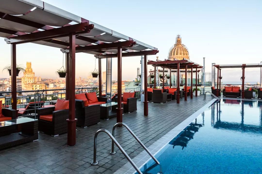 Hotel Saratoga本身的地理位置就极好,但是位于8楼露台的Bar Piscina Mirador,不仅囊括了哈瓦那旧城的景观,还附送了加勒比海景。