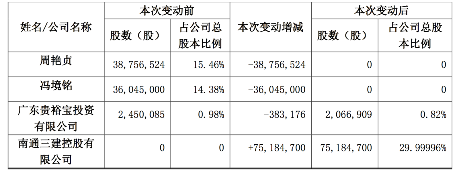 转让完成后,三建控股合计持有精艺股份7518.47万股,持股比例约为30%。精艺股份的控股股东将变更为三建控股,实际控制人将变更为三建控股的实际控制人黄裕辉、周炳高、施晖等8人。