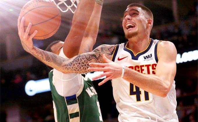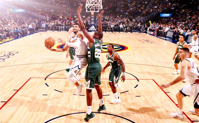 后一个进攻回合,掘金队在穆雷命中中投之后,加上后一个防守回合约基奇盖掉“字母哥”的上篮,争球过后间接拿到球的他独自一人快攻,获得两罚机会的他再得两分,帮助球队以74比70领先雄鹿队。
