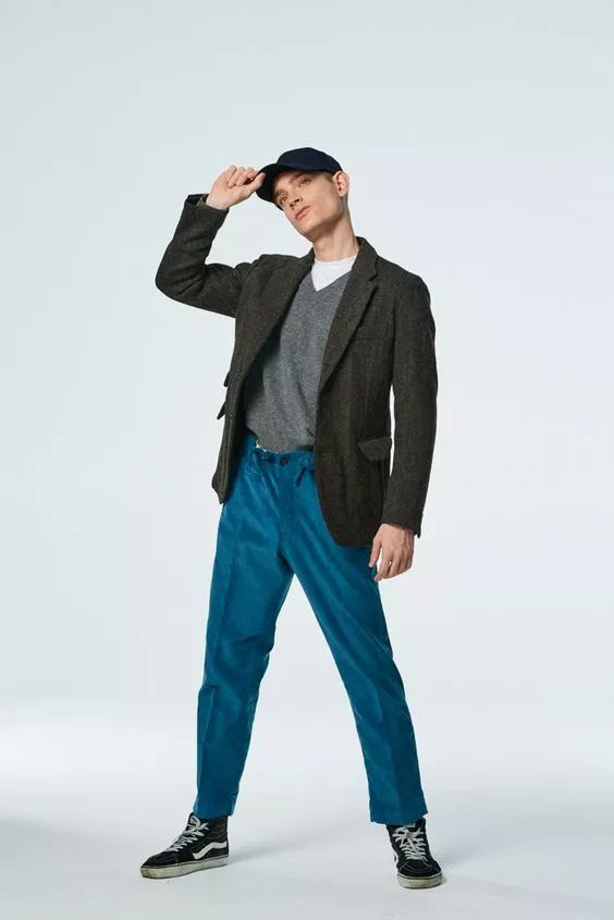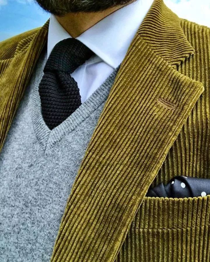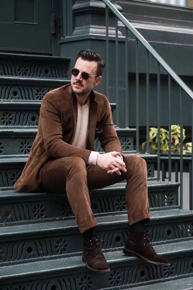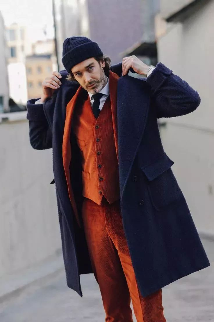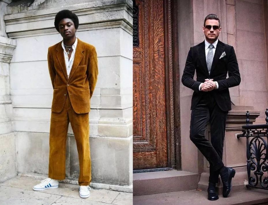 在穿灯芯绒的西装时,建议尽量穿整套,特别是新手,就不要分开来穿了。