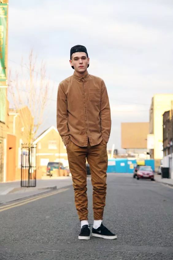 复古温暖的灯芯绒衬衫,配上一顶帽子,再搭配一条卡其裤,就能穿出秋冬时髦的氛围。