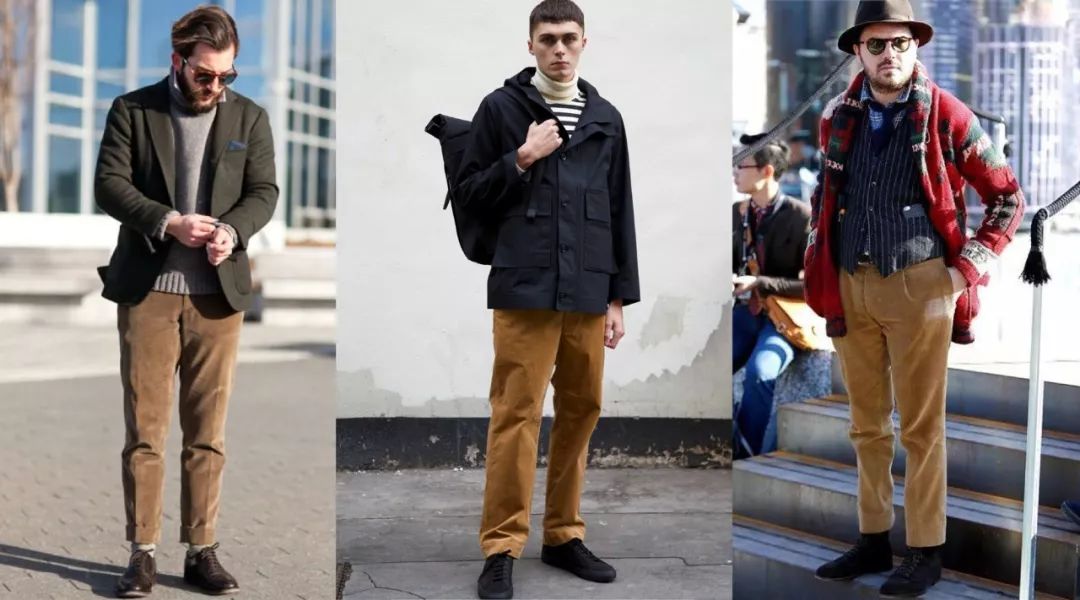 卡其灯芯绒裤不仅保暖实穿,大地色系的选择也增添许多MAN味。