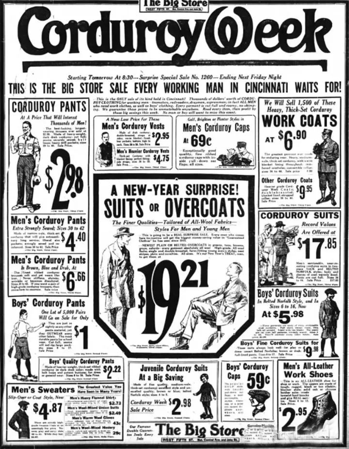 从1920年到1950年,灯芯绒完成了从传统的工装和制服,向时尚、潮流转变的过程。