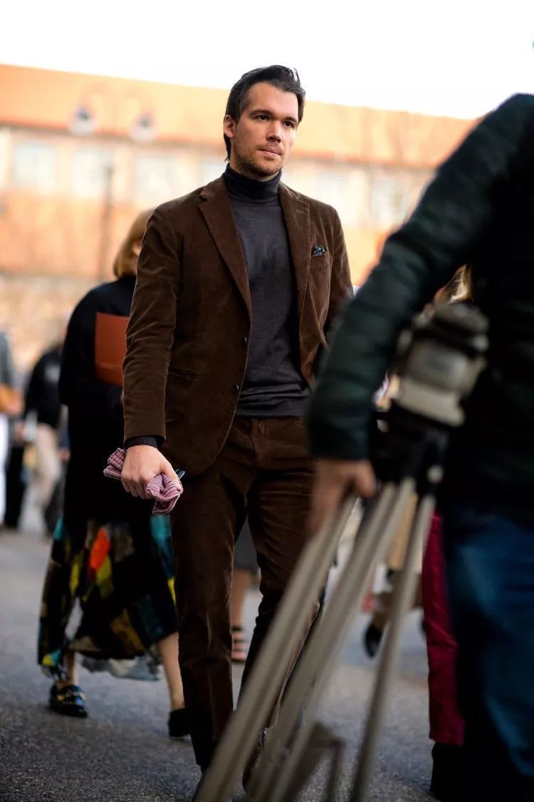 其次对灯芯绒西装来说,因为本身就非常显眼突出,所以要尽量用简单的衬衫或者是高领毛衣来搭,这样整体就不会太过于突兀,极为耐看。而且如果出席正式场合也能给足你面子
