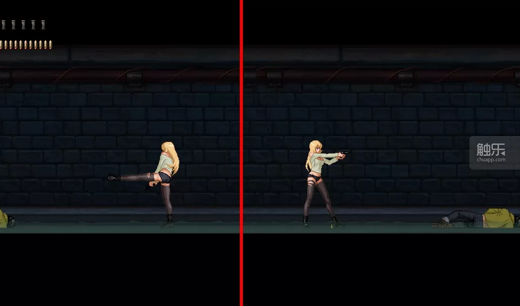因此《EZ》初代大胆地在2D平面ACT里完整重现了枪械游戏的操作方式,包括R换弹和空格跳跃,不仅提升了操作手感,也让枪支的代入感大大强化了,这是《EZ》给人印象最深的地方。
