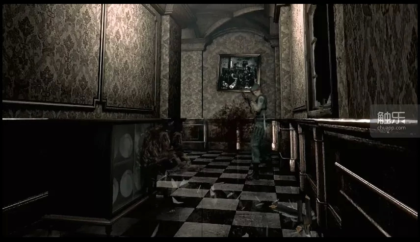 “文斗”指的是游戏中的动作难度和密度远低于ACT游戏。与ACT以击倒敌人为目标不同,恐怖游戏与敌人作战是为了获得生存空间,甚至包括避敌不战。所以,早期的“生化危机”并不会让玩家像但丁那样双持无限弹药随便突突或二三四段跳,大部分战斗核心在于玩家是否有意愿击倒敌人,游戏里体现为单独存在一个“举枪”按键,按下它时,说明玩家已明示要击败敌人的意图——早年的“生化危机”甚至还带自动瞄准,动作成分极其点到为止。