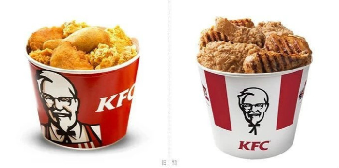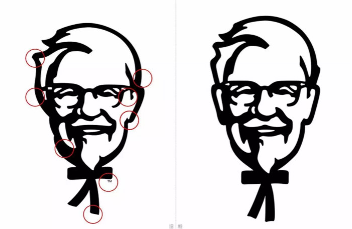 KFC品牌的创始人,山德士上校的形象,确实有略微的不同:上校的发型、眼镜、耳垂、领结等地方都做了细微调整。而且,从脸型上来看,上校的脸瘦了有没有发现?