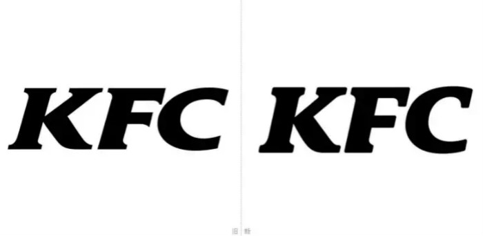除此之外,新版还调整了“KFC”的字体设计,如“K”的四个角,增加了轻微的圆角,填平了字母“F”的中间笔画右下侧的三角装饰,“C”的右上角增加了长度。